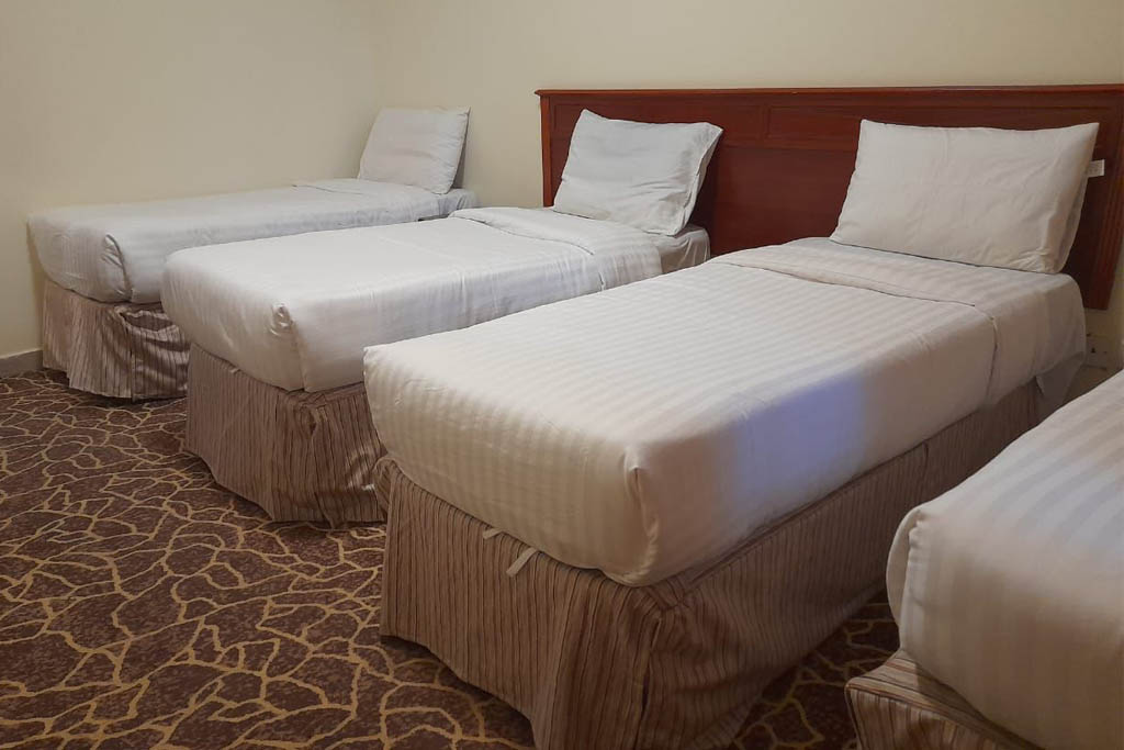 • Rooms in Makkah & Madina Hotels are normally as follows: Double Room = 2 Normal Beds, Triple Room = 2 Normal Beds + 1 Extra Bed, Quad Room = 2 Normal Beds + 2 Extra Beds.